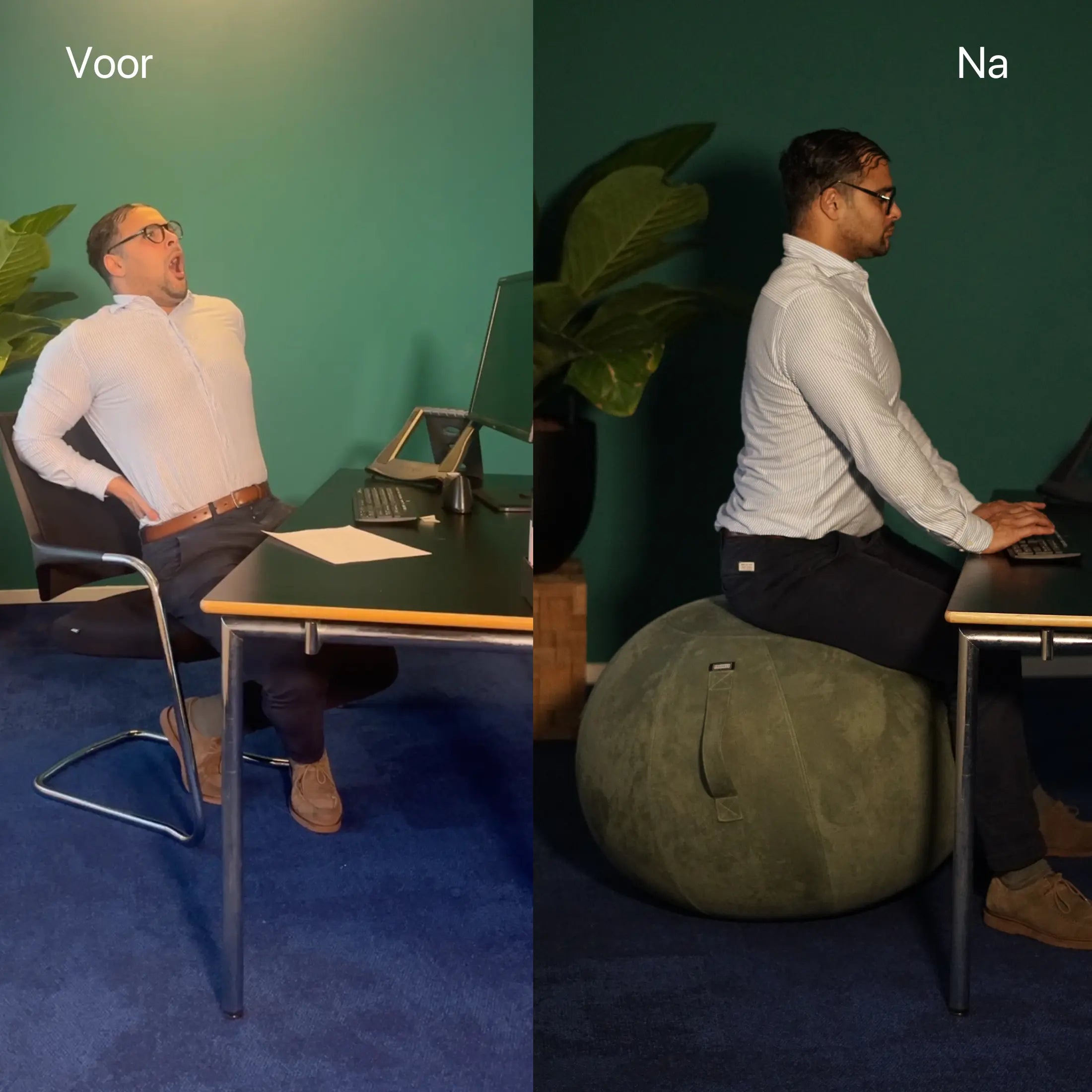 Met Fruscle zitballen verminderen we rugklachten en brengen we balans in je dagelijkse routines, zowel thuis als op kantoor.